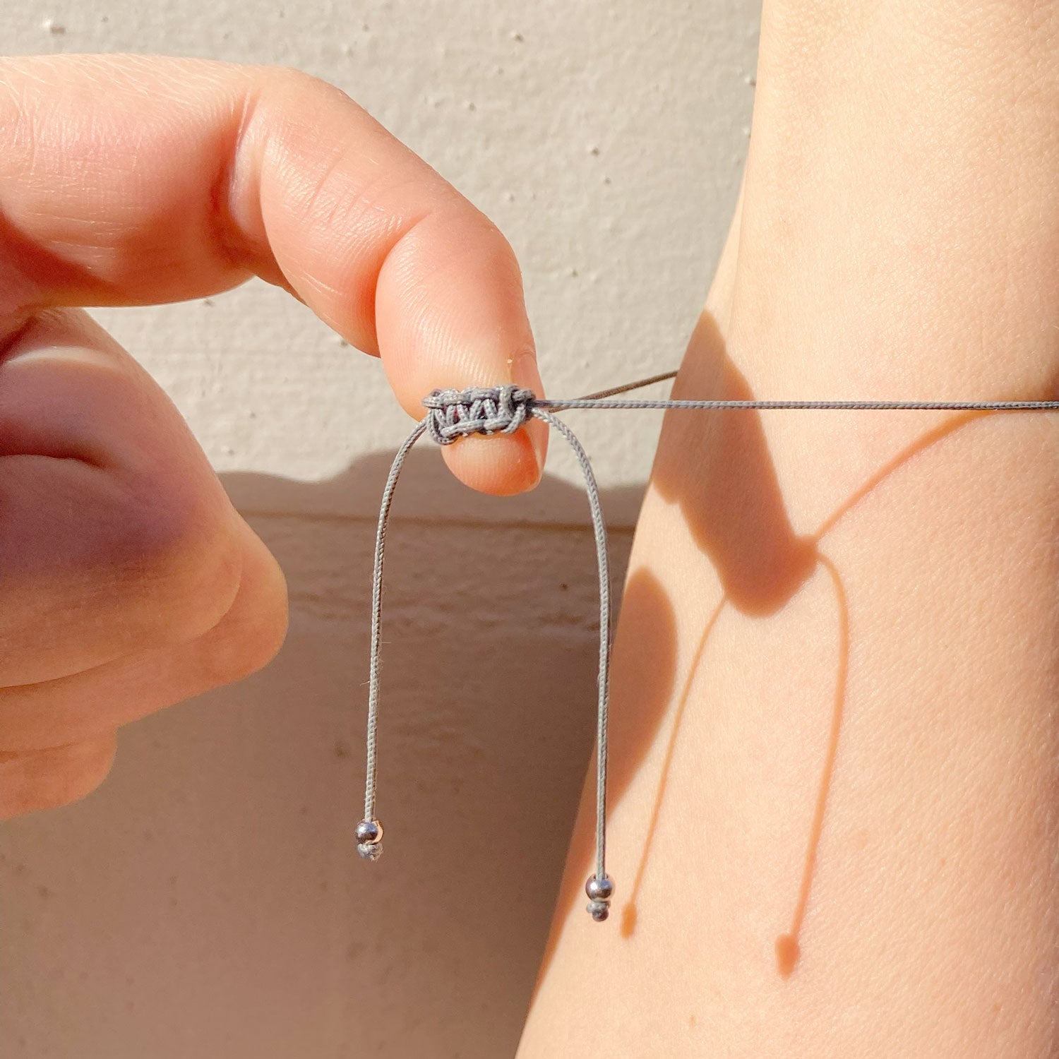 Das wunderschöne Armband lässt sich mit dem Makramee-Verschluss einfach verschließen und öffnen, indem man an den Enden zieht. Damit kann man es ans Handgelenk anpassen und es je nach Laune lockerer oder enger tragen.