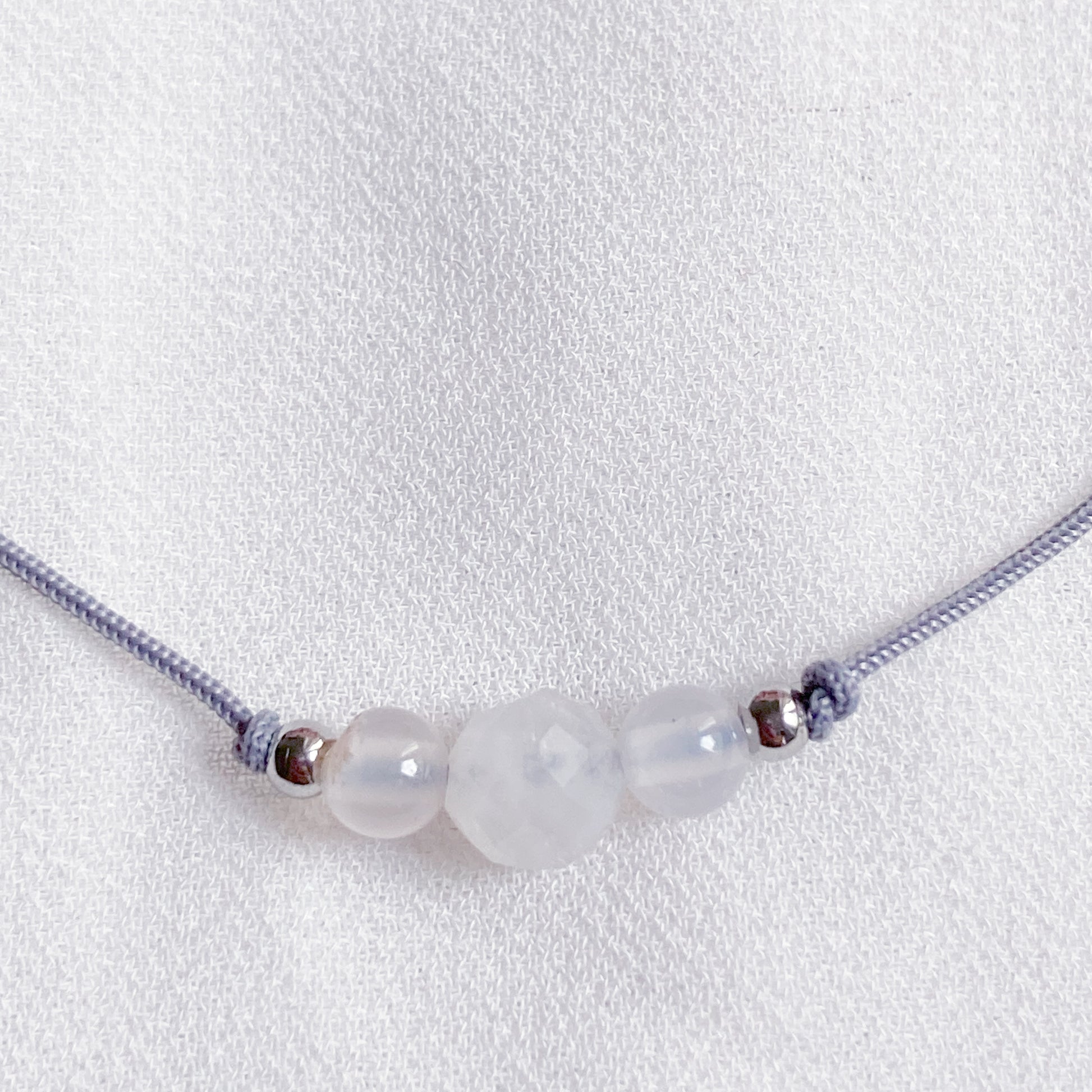 Material Perlen: Naturstein Achat (4mm) und Mondstein (6mm)